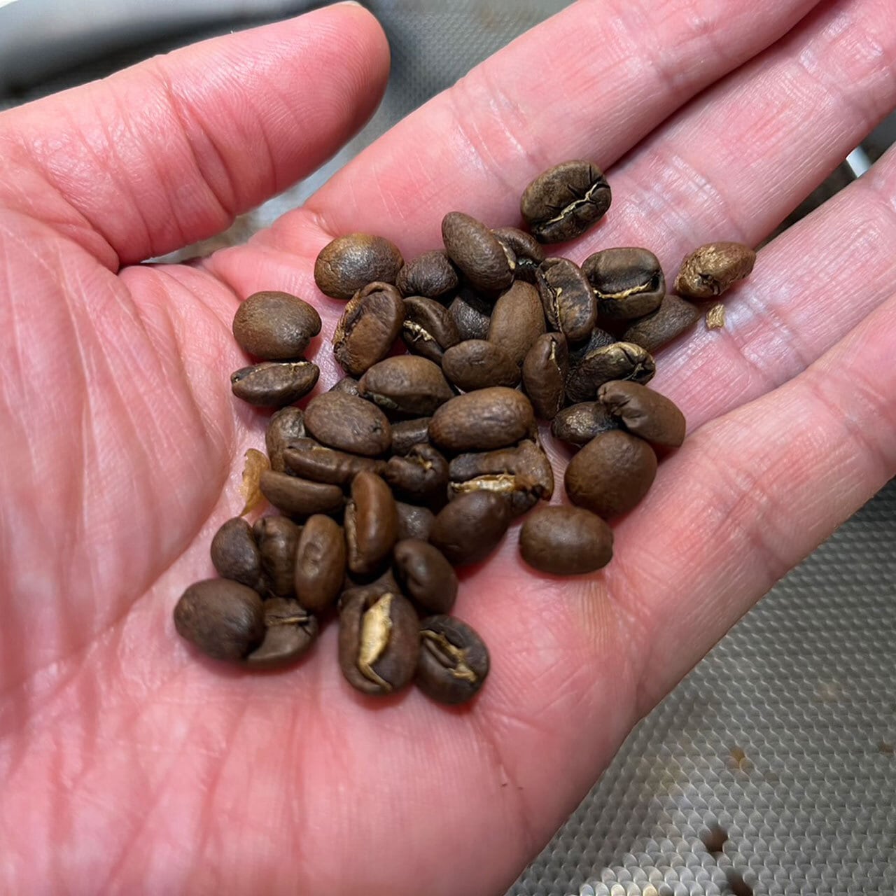 300gの生豆を投入して、20分程度手動で回転させ焙煎すると約250g程度の豆が焙煎できます。音や煙を頼りに焙煎を楽しんでください。